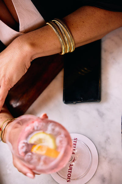 Deze rekbare driedubbele armband is het perfecte timeless accessoire. Zowel bold en bright als classy en elevated. Onmisbaar in je ROOI collectie!