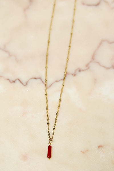["fijn","FW2025","goud","goudkleurig","halsketting","hanger","hangertje","her","Juweel","Juwelen","ketting","kettingen","lange ketting","Leuven","rood","rood en goud","ROOI","she","Sieraad","Sieraden","verfijnd","women"]