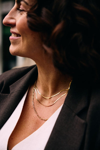 Layeren doe je zonder moeite met deze dubbele goudkleurige plate snake-ketting.
