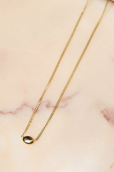 Minimalistische gouden ketting met kleine ellips. Tijdloos en elegant in haar eenvoud.
